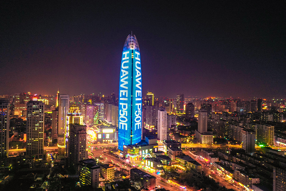 (華為集團投放濟南地标媒體--濟南綠地中心廣告)