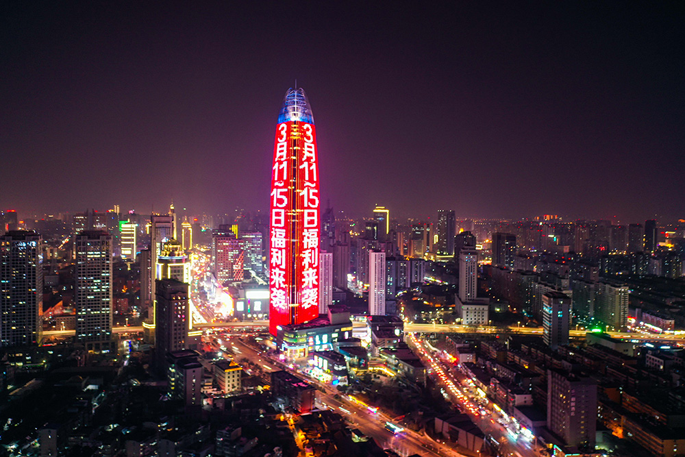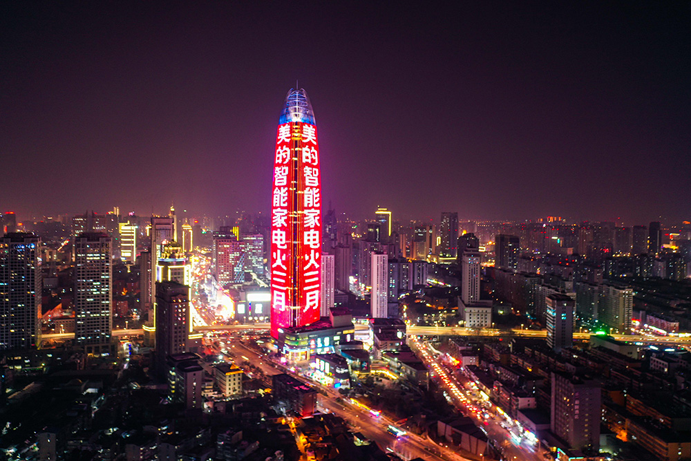 (美的集團投放濟南地标媒體--濟南綠地中心廣告)