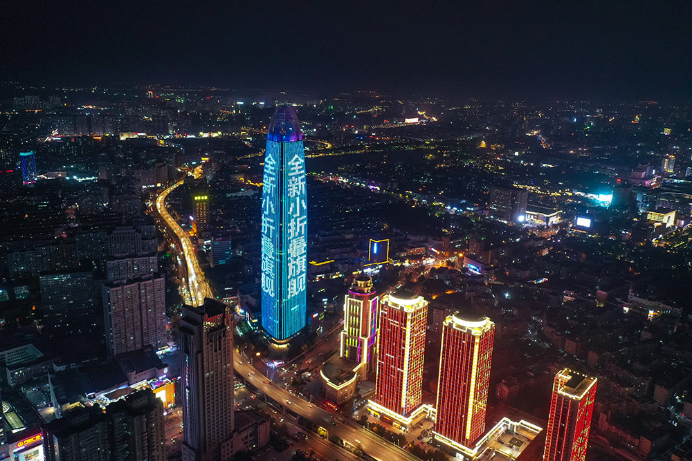(華為Pocket S投放濟南地标媒體--濟南綠地中心廣告)