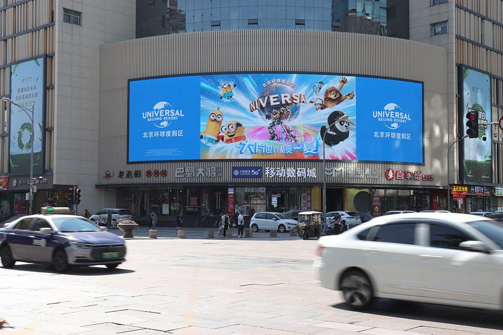 華途傳媒|北京環球度假區點亮濟南齊魯大廈戶外LED屏