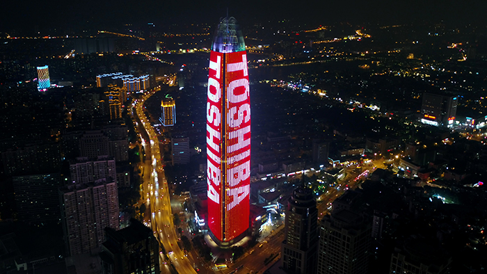 (東芝投放濟南地标媒體-濟南綠地中心第一高媒廣告)