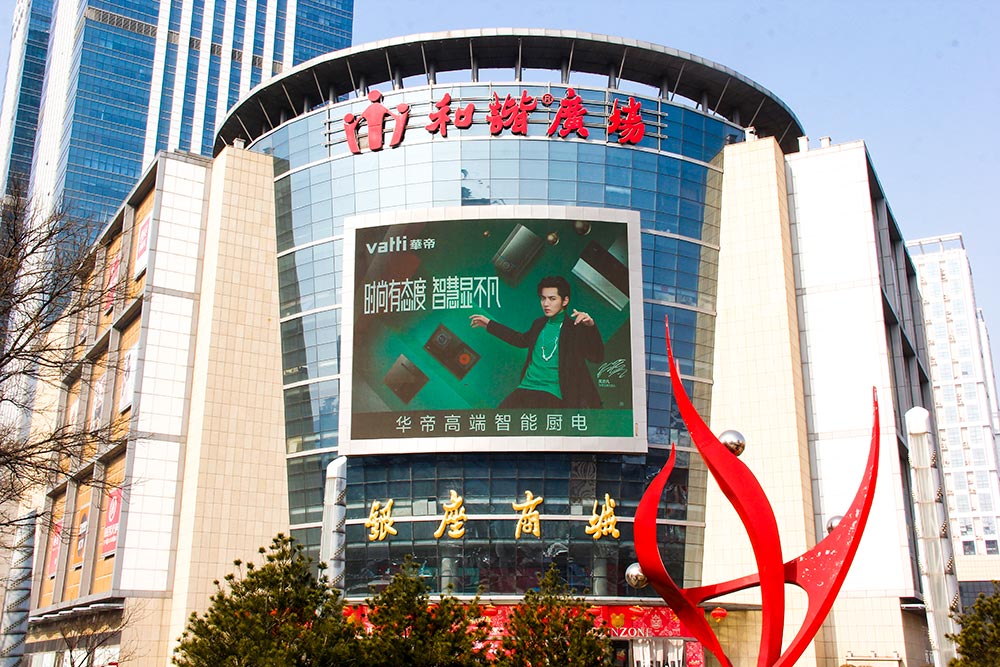 (華帝投放“經(jīng)十屏”銀座和諧廣場戶外LED屏廣告)