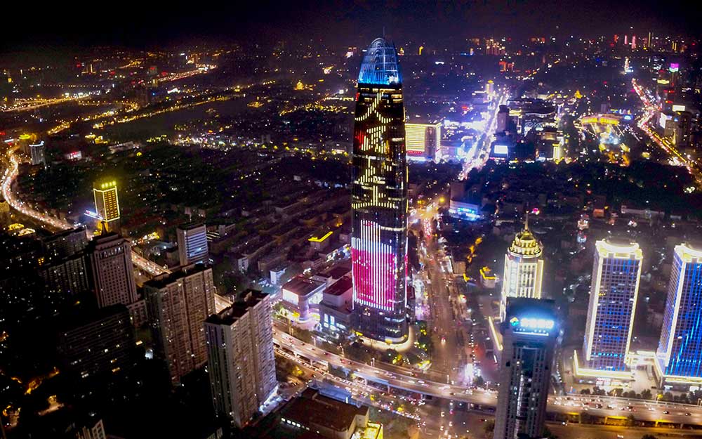 (金沙回沙酒業投放濟南地标媒體-濟南綠地中心廣告)
