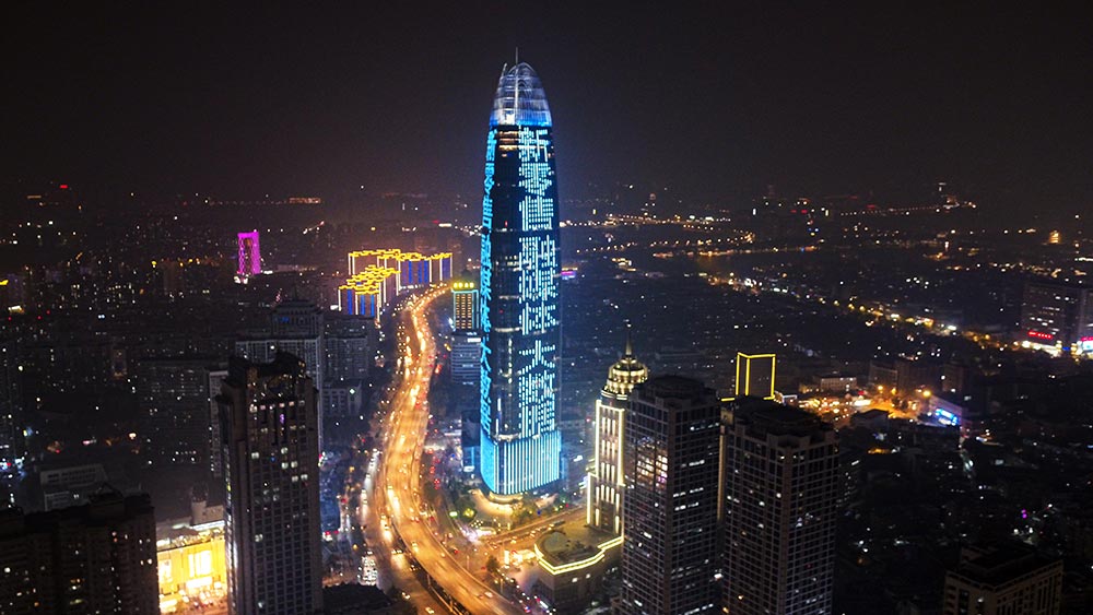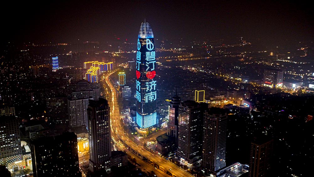 (碧汀科技投放濟南地标媒體-濟南綠地中心廣告)