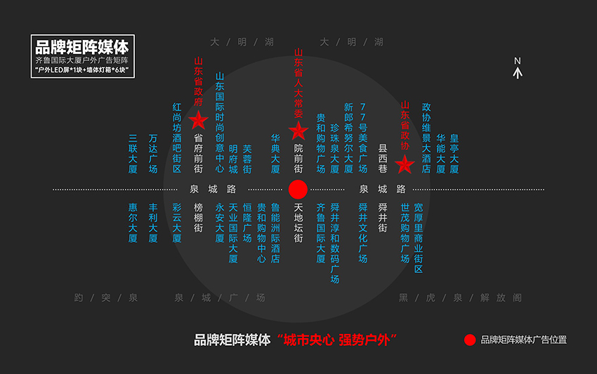 【媒體屬性】濟南央心戶外廣告“戶外高清免費燈箱矩陣,品牌形象矩陣”