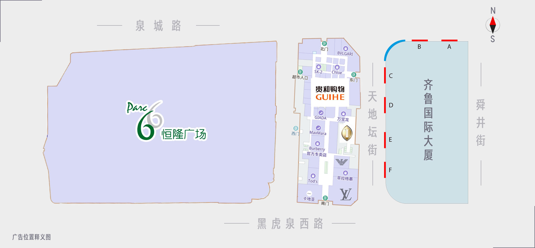 【媒體位置】泉城路與天地壇街交彙處(齊魯國(國語免費guó)際大廈牆體)朝向(xiàng)天地壇街