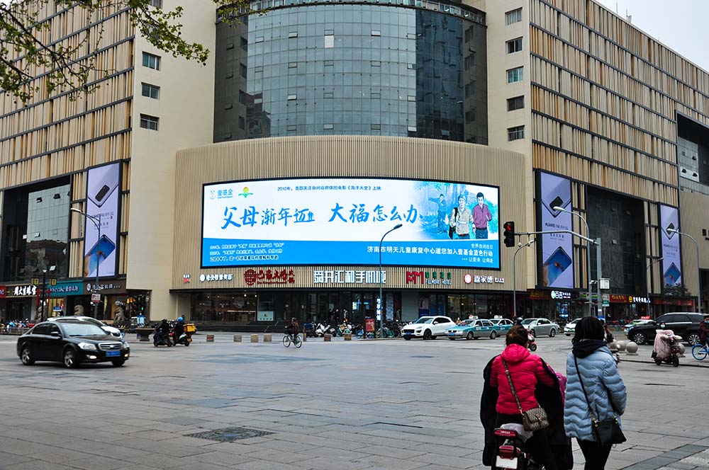 (明天兒童康複中心投放“網紅屏”濟南泉城路世茂廣場戶外LED屏)
