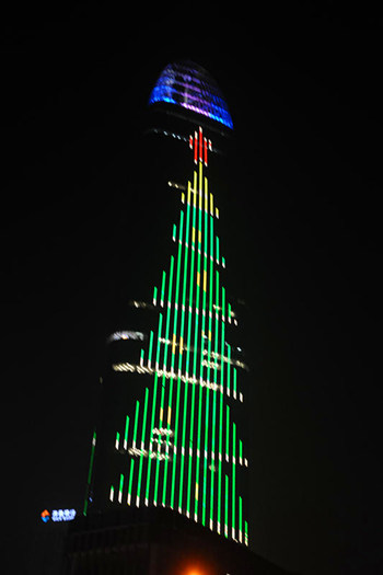 聖誕樹現濟南綠地最高樓戶外LED屏