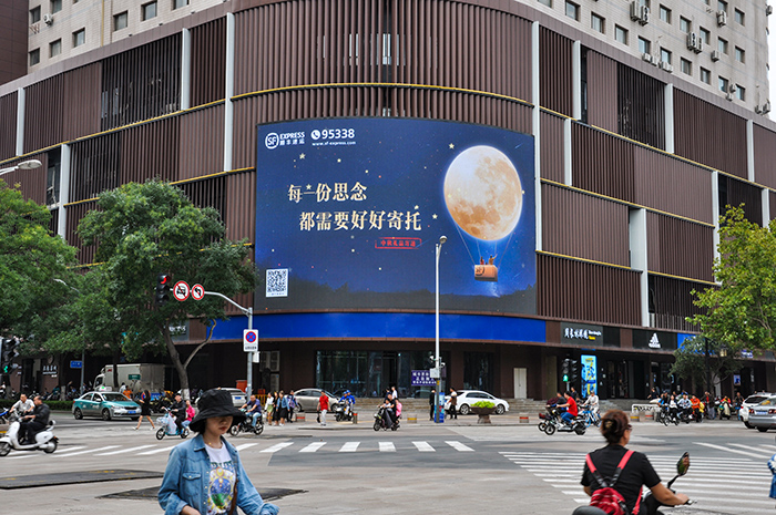 (順豐速運投放“軍區商圈屏”銀座八一購物廣場戶外LED屏廣告)