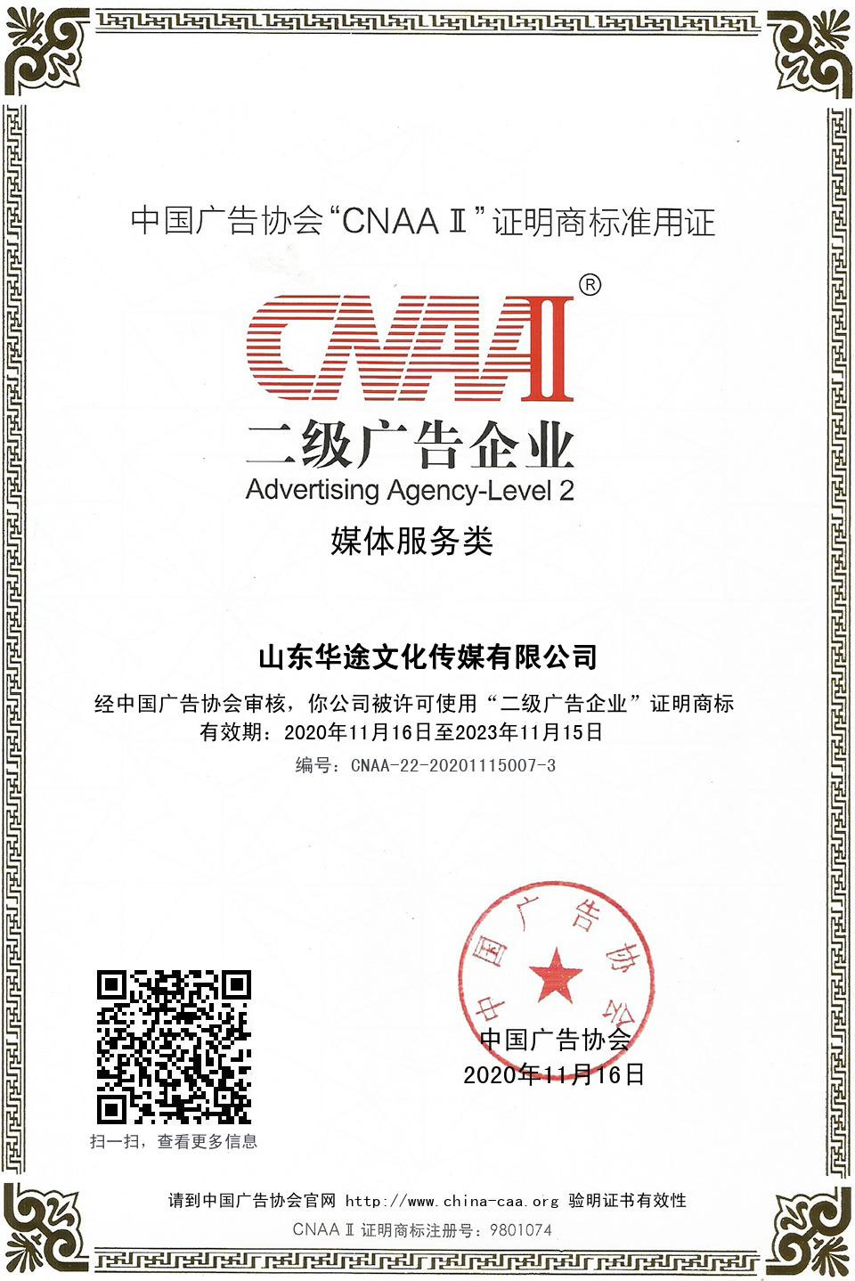 【喜訊】華途傳媒榮獲媒體服務類“二級廣告企業”資質