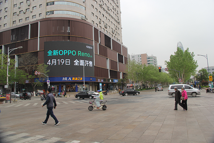 (OPPO投放“省俯”濟南泉城路彩雲大廈戶外LED屏廣告