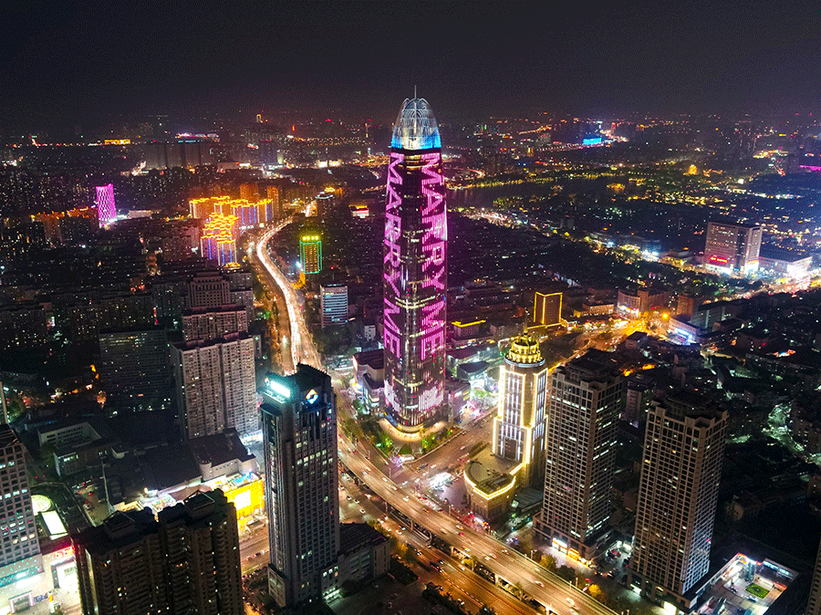(個人求婚内容投放濟南地标媒體-濟南綠地中心廣告)