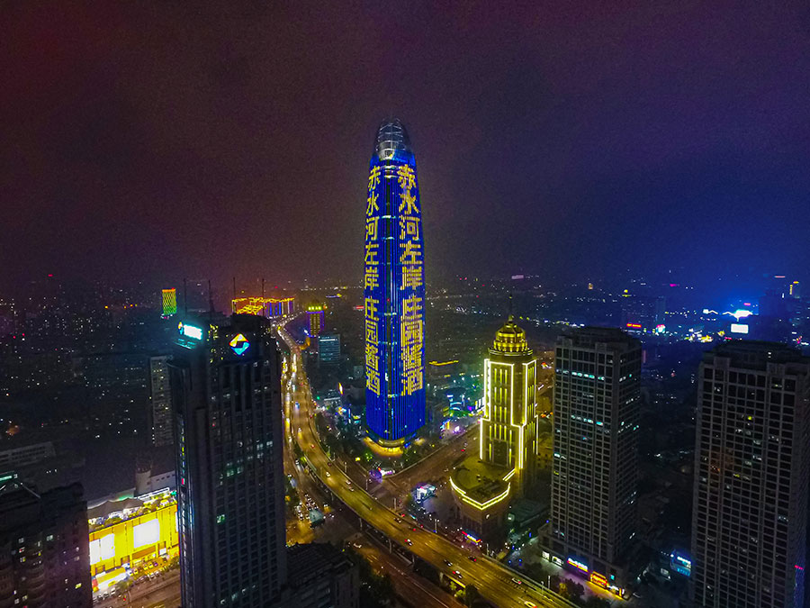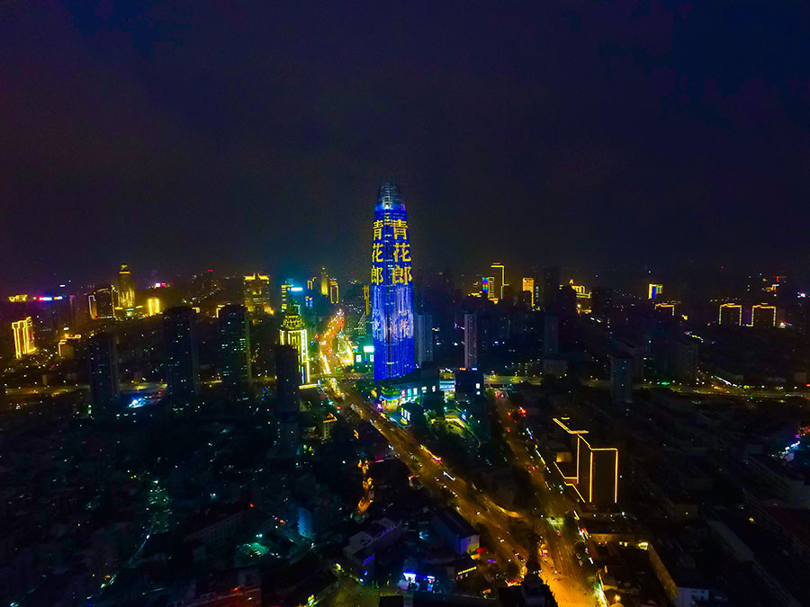 (青花郎酒投放濟南地标媒體-濟南綠地中心廣告)