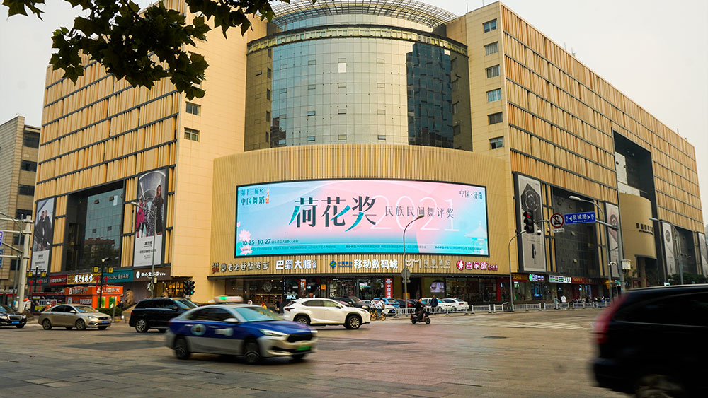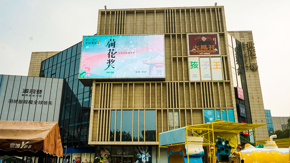 (“荷花獎”投放“網紅屏”泉城路世茂廣場戶外LED屏廣告)