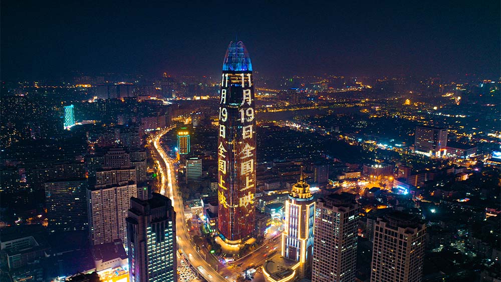 (《鐵道(dào)英雄》投放濟南地标媒體——濟南綠地中心高媒廣告)