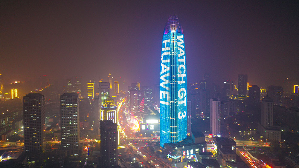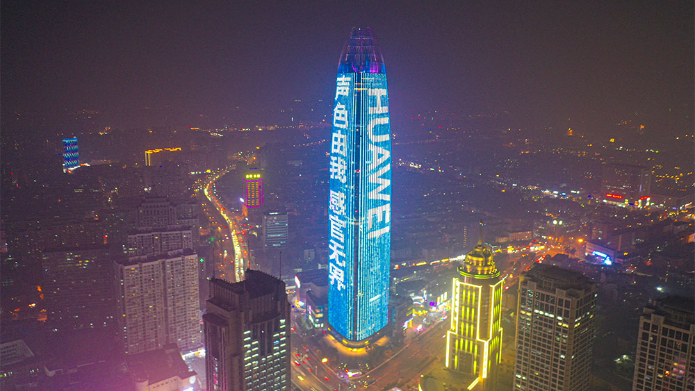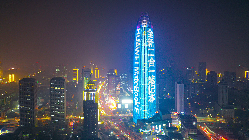 (華為投放濟南地标媒體——濟南綠地中心高媒廣告)