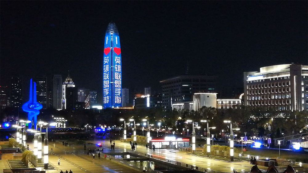 (英雄聯盟投放濟南地标媒體--濟南綠地中心廣告)