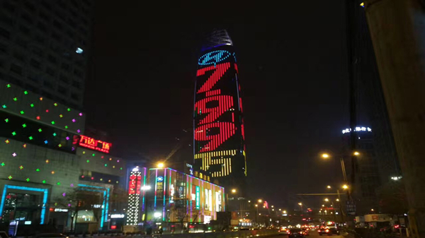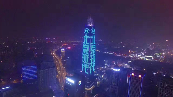 (北京現代投放濟南地标媒體-濟南綠地中心廣告)