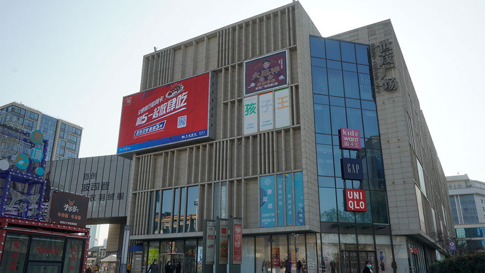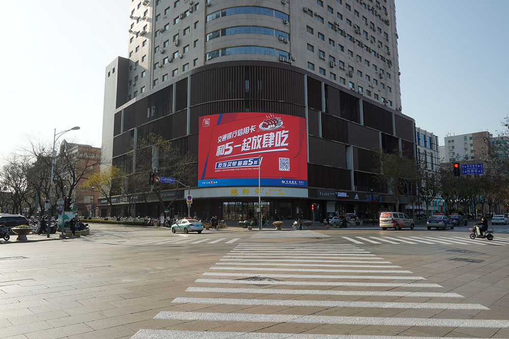 (交通銀行投放“旗艦商屏”山東銀座商城旗艦店戶外LED屏廣告)